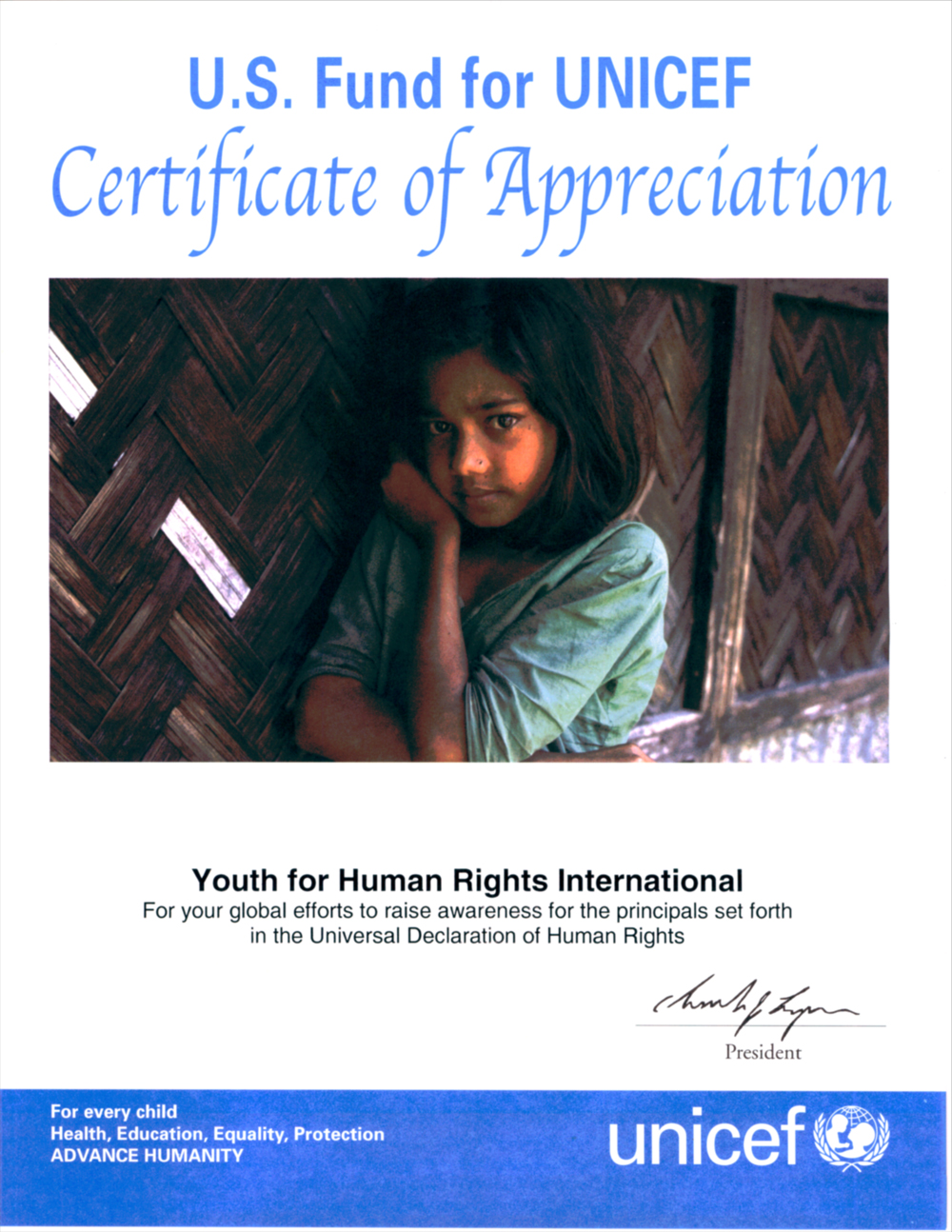 Diploma de Apreciación de UNICEF