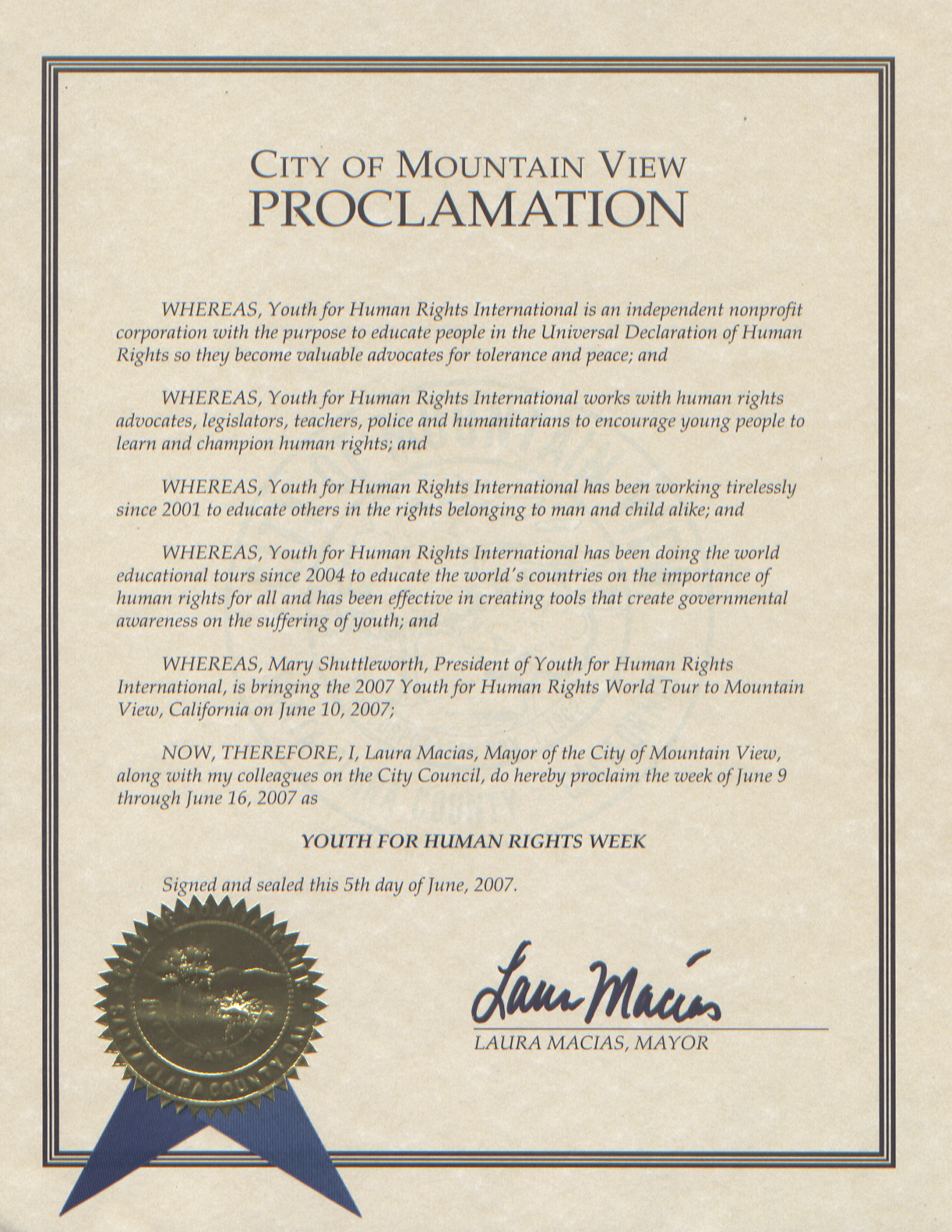 Proclamación de la Ciudad de Mountain View